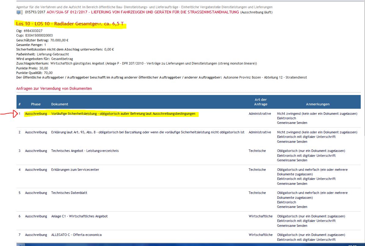 Auftrag gebendes Amt: Agentur für die Verfahren und die Aufsicht im Bereich öffentliche Bau- Dienstleistungs- und Lieferaufträge Vergabestelle: Einheitliche Vergabestelle Dienstleistungen und Lieferungen Ausschreibung: AOV/SUA-SF 012/2017 - Lieferung von Fahrzeugen und Geräten für die Straßeninstandhaltung